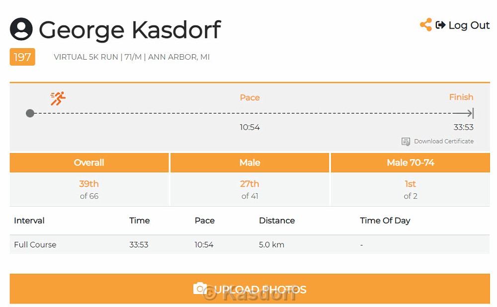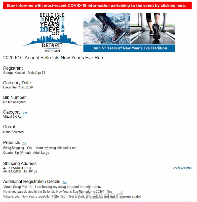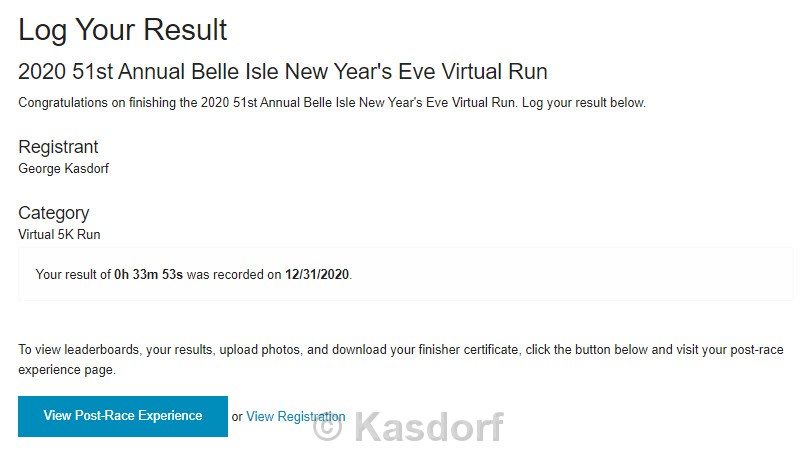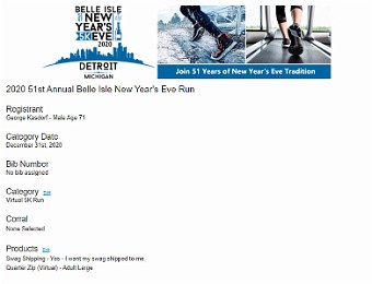The 2020 Belle Isle 5K was run as a Virtual race due to Covid 19 pandemic. My 13th consecutive running.