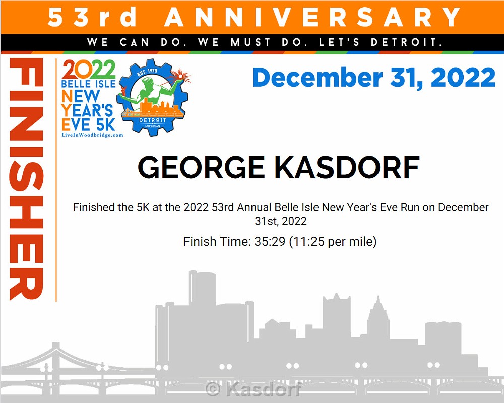 2022 Belle Isle New Years Eve 5Km virtual race.