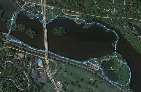 A run around the Gallup Park pond. Over the bridge(s) and through the woods.